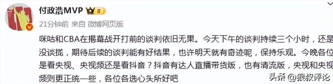 媒体人:CBA和咪咕在新赛季揭幕战前谈判三小时结果依旧没有谈拢
