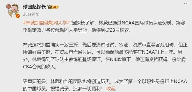 宣布了!正式签约加盟!第一个NCAA中国职业球员
