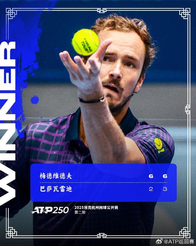 梅德韦杰夫20轻松击败资格赛选手,顺利晋级杭州赛男单八强