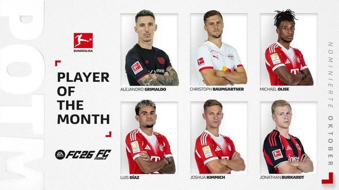 | 北京时间10月29日,德甲官方公布了10月最佳球员的候选名单,其中格里马尔、奥利塞、路易斯-迪亚斯、基米希等人在列。