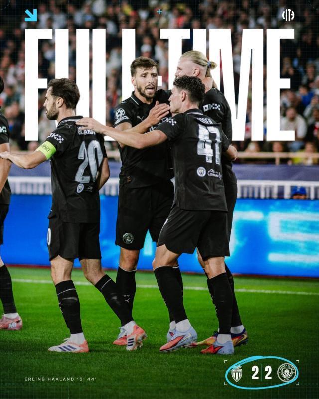 【欧冠】哈兰德梅开二度,戴尔绝平,曼城2比2摩纳哥