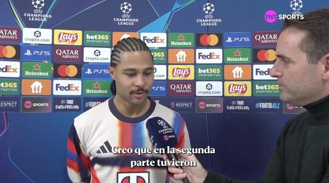 | 欧冠联赛阶段第6轮,拜仁主场3-1战胜葡萄牙体育,本场比赛贡献1球1助的格纳布里赛后接受了TNT体育墨西哥频道的采访。