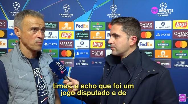 | 欧冠联赛阶段第6轮,巴黎在客场0-0战平毕尔巴鄂竞技。赛后,巴黎主帅恩里克接受了TNT体育巴西频道的采访。
