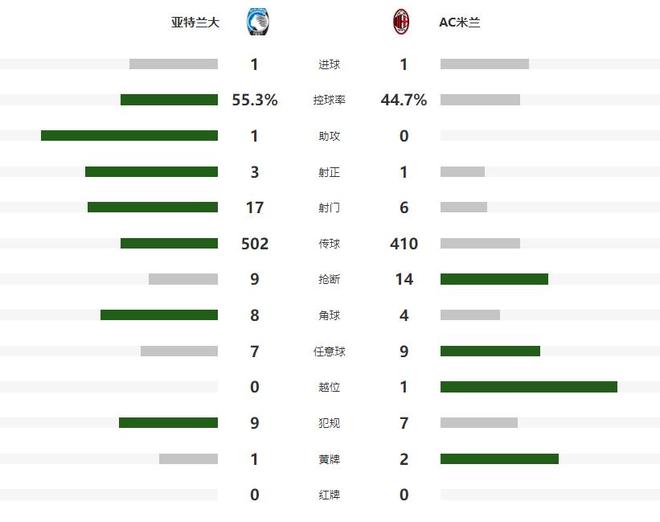 客场作战的AC米兰,在比赛刚刚开打第4分钟,就打破平衡取得了梦幻般的开局,里奇大禁区前沿的远射,击中埃德松折射入网,打进了自己加盟红黑军团后的首粒进球,帮助AC米兰取得了1-0的领先,主场遭遇开门黑的亚特兰大,随后发起了猛攻,第8分钟希恩禁区内头球攻门,皮球擦着立柱出了底线。 第21分钟卢克曼正面远射被迈尼昂神勇扑出,6分钟之后,阿哈诺尔禁区左侧的劲射没有压住,直接一脚高射炮将球踢飞,错失扳平良机,不过在第35分钟,狂攻不止的亚特兰大还是扳平了比分,帕萨利奇一脚直塞打穿米兰防线,卢克曼禁区内爆射攻破迈尼昂十指关,让两支球队带着1-1的比分,回到了中场更衣室,主场面对AC米兰打进4球,让卢克曼成为了亚特兰大队史意甲主场对米兰进球最多的球员。