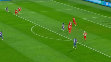 下半场刚刚回来不到两分钟,纳萨里奥生生挤出一个机会,传给位置非常好的阿奇姆彭!但是阿奇姆彭面对近在咫尺的得分机会,却一脚打在了防守球员身上,与进球失之交臂。