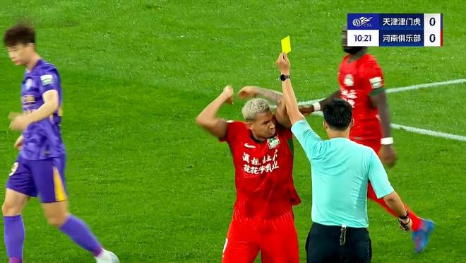 开场之后,双方的节奏并不快,河南队虽然客场作战,但是场面上的配合和威胁次数,丝毫不落下风。积极的前场攻势,令阿奇姆彭、卡多索连续吃到黄牌。第21分钟,河南队中场送出一脚漂亮的过顶球,阿奇姆彭拿球插入禁区挑射,遗憾偏出球门!裁判连续争议的吹罚,令河南队非常不满,卢永涛、王上源再度吃到黄牌。