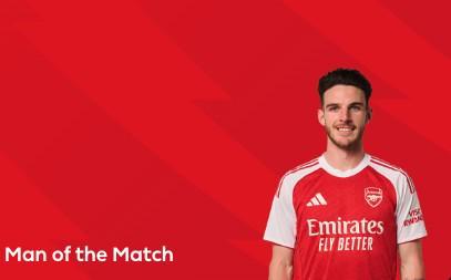 弑旧主,赖斯当选阿森纳vs西汉姆全场最佳球员