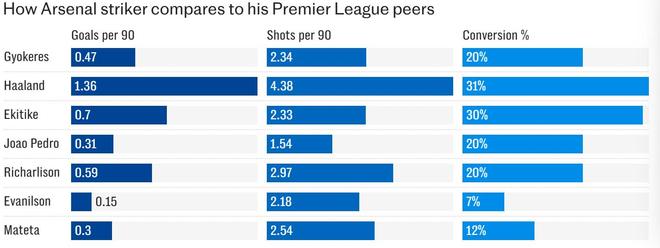 我们能从哲凯赖什阿森纳生涯的这头几个月学到什么?虽然样本量很小,但毫无疑问,他发现英超后卫比葡萄牙顶级联赛的对手更难对付——他在葡萄牙体育的66场比赛中攻入了68球。 在最基本的层面上,哲凯赖什在阿森纳的触球机会比在葡萄牙体育时少。在所有比赛中,他每90分钟的触球次数从上赛季的36次下降到本赛季至今的24次。 在葡萄牙,他常常通过带球冲击后卫来折磨他们,场均超过4次“向前推进盘带”。而在阿森纳至今,他场均只有1次向前推进盘带。 与去年相比,他本赛季的射门、传球和盘带次数也都显著下降。而且当他试图带球过掉对手时,大多未能成功:本赛季他尝试过人的成功率仅为23%,而去年为42%。 至于他的临门一脚,他在英超20%的射门转化率与里沙利松和若昂-佩德罗等人相当,但落后于利物浦的埃基蒂克(30%)、曼城的哈兰德(31%)和纽卡斯尔联的沃尔特马德(43%)。 实际上,哲凯赖什未能在英超保持他在葡萄牙达到的惊人表现水平,本不应令人感到意外。英超是一个明显强于葡超的联赛,Opta统计学家将葡超评级为比英冠水平还低的联赛。在葡萄牙,哲凯赖什常常是球场上最具冲击力的球员,是操场上的最强霸主。而在身体对抗更激烈的英超,他通常不具备同样的优势。 所有这些应该引起多大的担忧?嗯,如果有阿森纳球迷期望哲凯赖什本赛季进球超过40个,就像他在葡萄牙的两个赛季各自做到的那样,那么他们应该准备好大失所望。 但讨论还有另一个重要方面:哲凯赖什对阿森纳作为一个整体的影响。他的个人表现可能不如许多人希望的那样惊艳,但他的存在显然似乎对阿尔特塔进攻体系中的其他球员有所帮助。作为一个支点,哲凯赖什能够牵制后卫,并通过其插入身后的跑动来拉扯对方的防线。 “我们非常感激他所做的一切,”萨卡上周末说。“他如何护球,如何跑动,他给我们带来的威胁。他是我们赢得这些比赛的一个重要原因。”周中对阵奥林匹亚科斯的比赛就是一个例子,哲凯赖什冲向球门的跑动帮助马丁内利轻松推射空门。另一个例子发生在上周六,三名西汉姆联后卫过于专注于阻止哲凯赖什,以至埃泽在禁区內完全无人防守。 哲凯赖什的态度当然毋庸置疑。他对俱乐部的热情是阿森纳今年夏天选择他的一个主要原因他告诉阿尔特塔,为阿森纳踢球是他的“梦想”,而他不知疲倦的工作效率也表明他极度渴望证明外界的炒作是值得的。球迷们看到了这一点并认可它。在周六的酋长球场,人们可以感受到球迷多么渴望哲凯赖什能进球。 还应该指出的是,哲凯赖什在本赛季开局这几个月里承受了极大的身体压力。他转会的拖延意味着他的季前准备有限,而哈弗茨的伤病也使得阿尔特塔无法轮换他的前锋。在理想情况下,哲凯赖什本应更逐步地适应这个赛季。 你对于哲凯赖什持什么立场?也许你的答案取决于你的期望。 对于那些期待一个能进30球的前锋、一个潜在金靴奖得主的人来说,这头几个星期可能令人失望。但对于那些期望一个能为阿森纳锋线增添新维度、为队友创造空间并改变进攻角度的球员来说,哲凯赖什目前正在满足大部分的要求。 【上咪咕独家看英超】 |