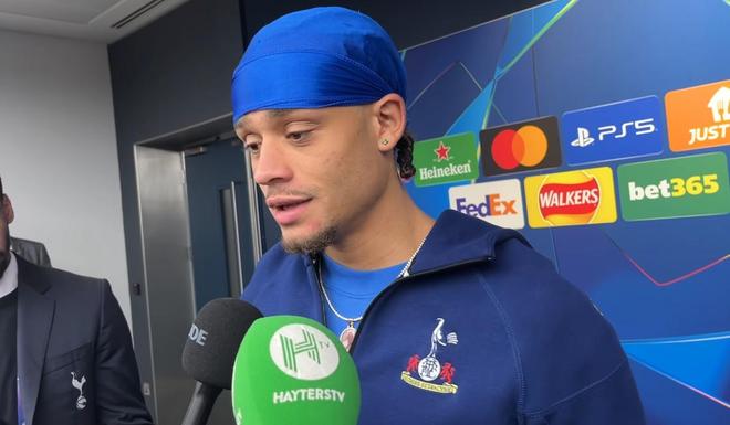| 在欧冠主场3-0大胜布拉格斯拉维亚后,热刺中场哈维-西蒙斯在混合采访区接受了采访。
