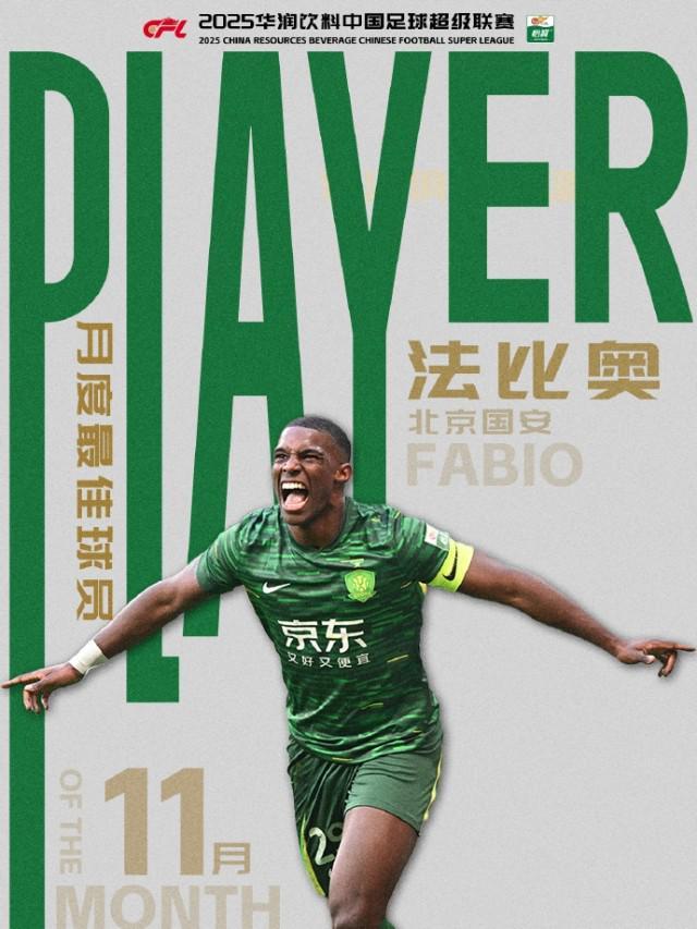 | 法比奥当选中超11月最佳球员 中国足球 12-08 17:30 中超官方今日公布11月最佳球员,北京国安外援法比奥获得此荣誉。 11月的2场联赛,法比奥轰入6球送出1次助攻,并在末轮上演大四喜,成为本赛季的中超金靴。 注:11月评选范围为第29-30轮,共计2轮,参选球员数据以上述2轮比赛数据为准。